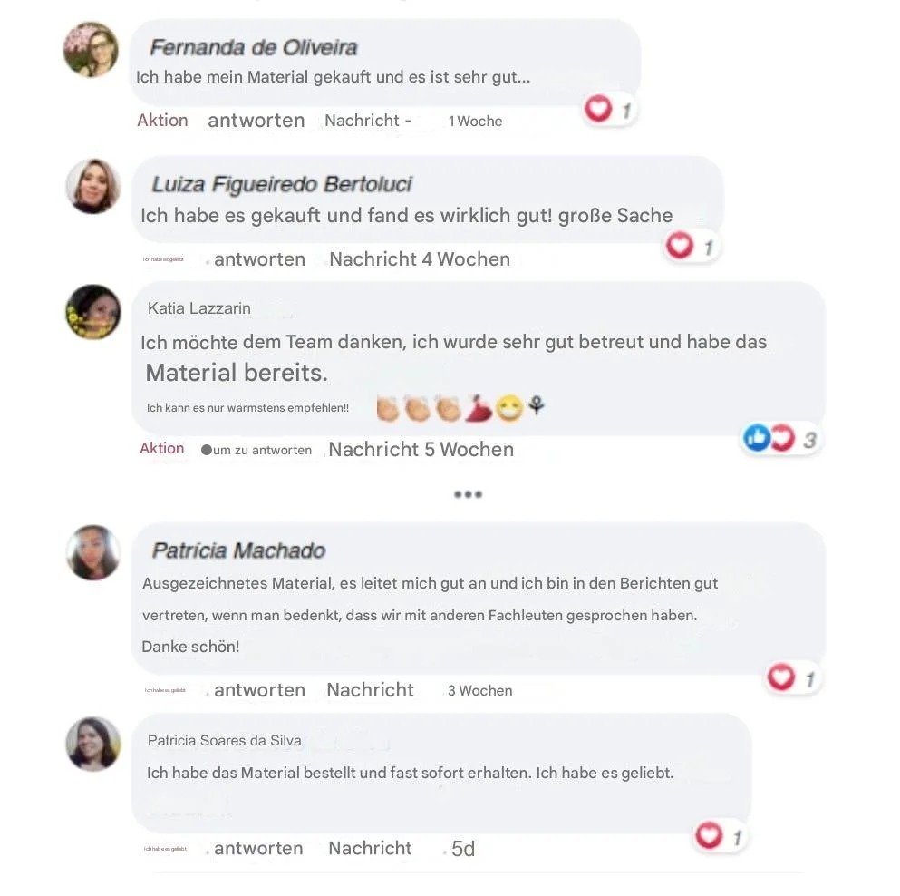 Du erhältst Zugang zu vollständigen und hochwertigen Materialien, um all deine Fragen zu beantworten, und bekommst 5 wunderschöne Zertifikate, anerkannt von der PNPIC und der ABED. </