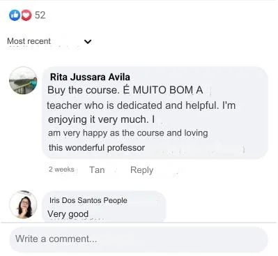 Lifetime access to the course + group to answer questions and exchange experiences.